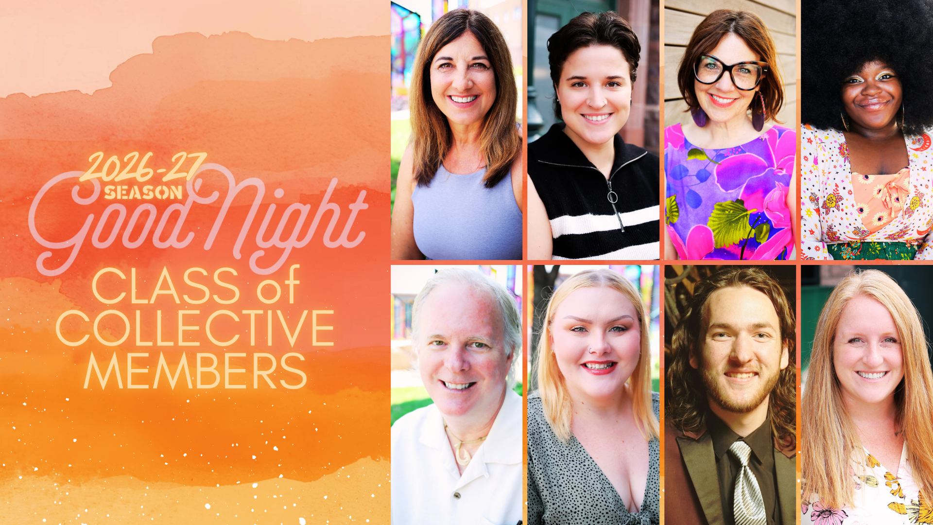 Since 2019, Good Night has annually installed a new class of talented artists into our official performer collective, which functions similarly to a company or troupe. It’s comprised of former guest artists who have gone above and beyond, have a notable tenure with the organization, strive to live out Good Night’s mission and values, serve as beacons of professional and ego-free positivity in every production of which they’re a part and show consistent support and physical presence for their fellow actors and to the company as a whole.